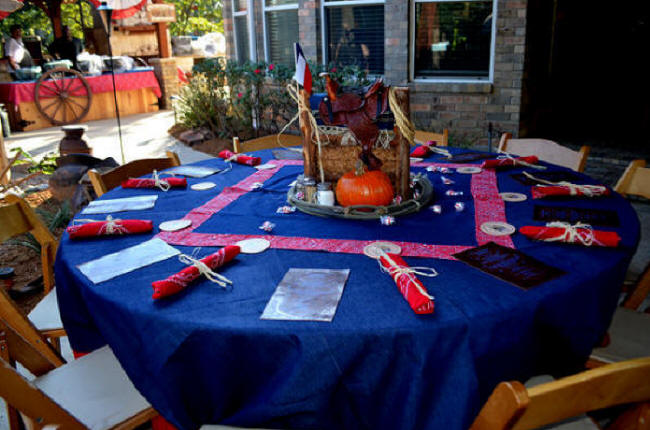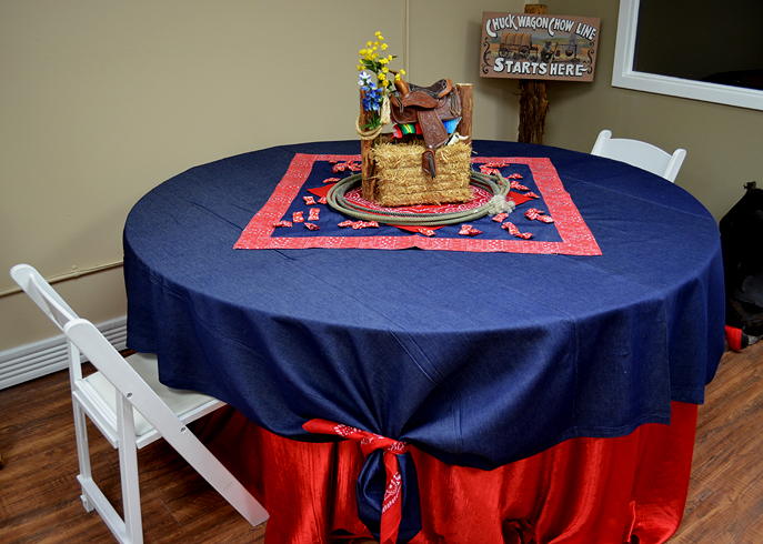 Western Centerpiece on Denim Tablecloth